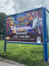 Mittlerweile der einzige (!!) in Deutschland der noch mit Raubtieren tourt. Der Circus Krone bleibt noch bis zum 7.9. in Konstanz. Danach geht es weiter nach Heidenheim, Donauwörth &