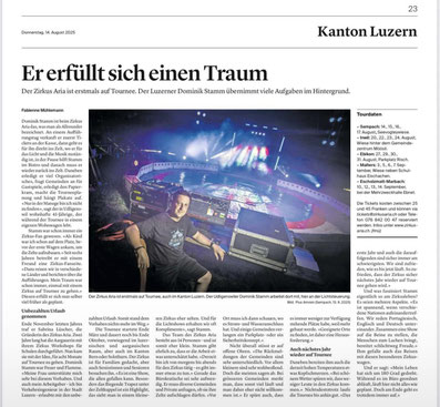 Dominik Stamm erfüllt sich selber seinenTraum und tourt mit dem Zirkus Aria mit
